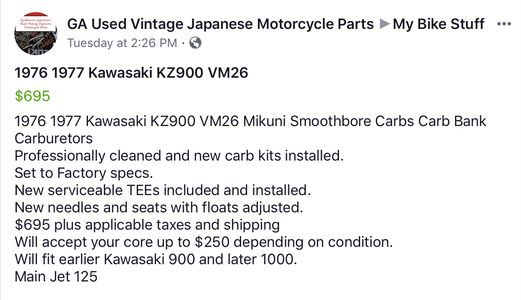 Kawasaki Triple, KZ650, KZ900 and KZ1000 Rebuilt Carburetors Available